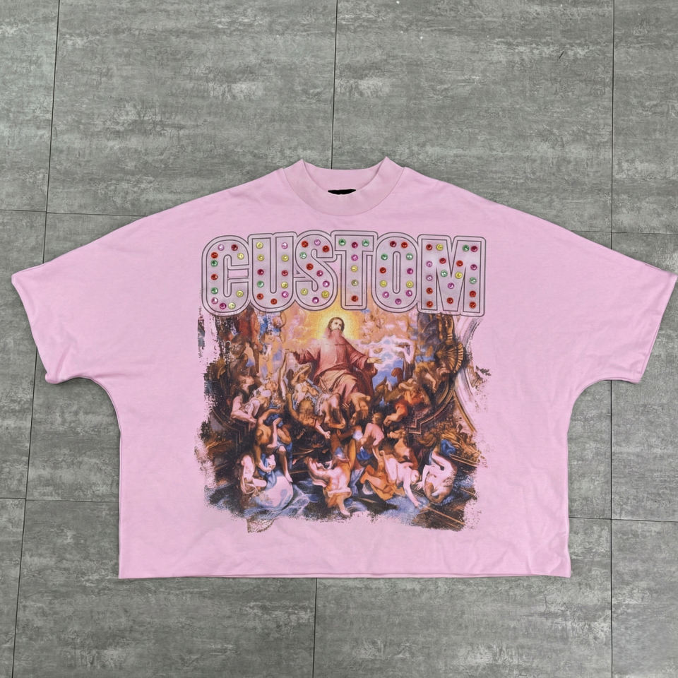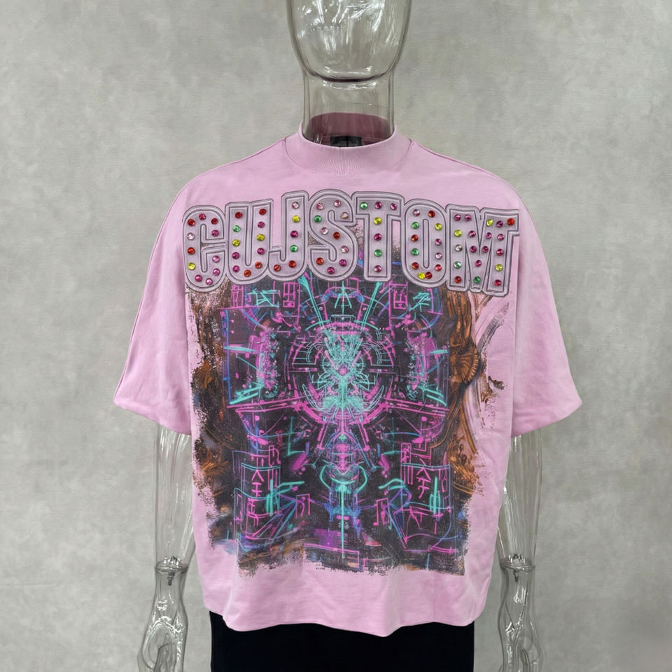 T-shirts Homme Col Montant Double Couche Coupe Boxy Oversize Personnalisés Imprimés DTG en Tissu Épais 2026 – Service ODM