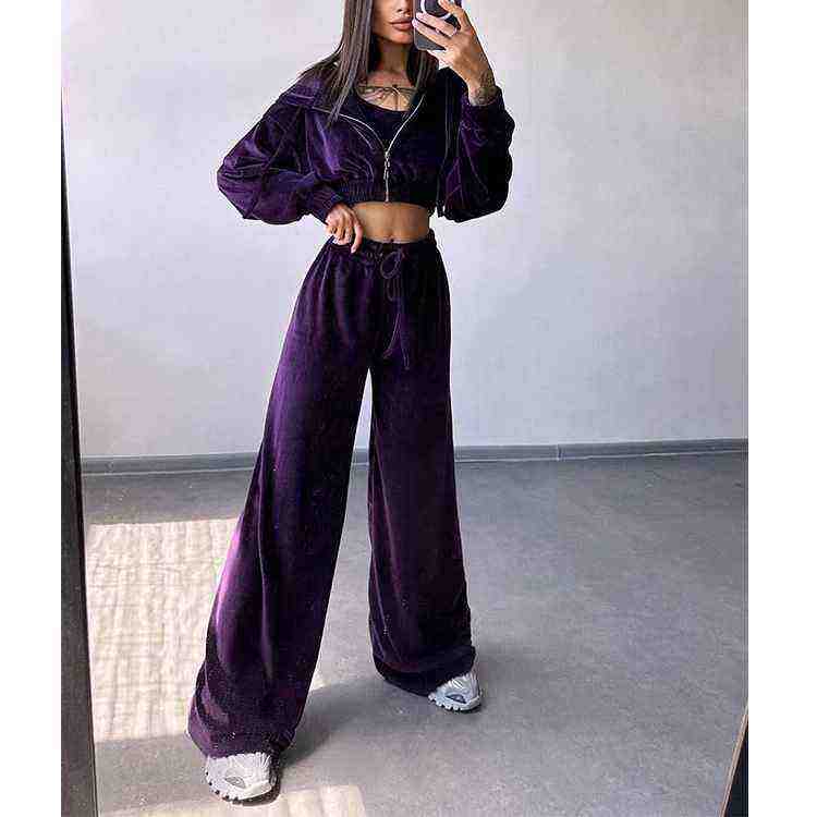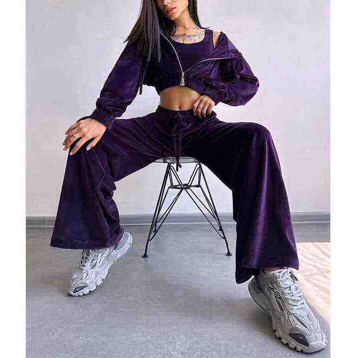 Ensemble de survêtement 2 pièces pour femme, jogging décontracté en molleton d'hiver avec logo personnalisé en strass, broderie, violet, 2026