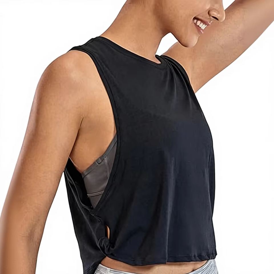 2026 Veste sans manches à col en V et pantalon de yoga, personnalisables avec logo frontal, écologiques, respirants, en denim/satin, avec fermeture éclair, grande taille, pour entraînement et gym