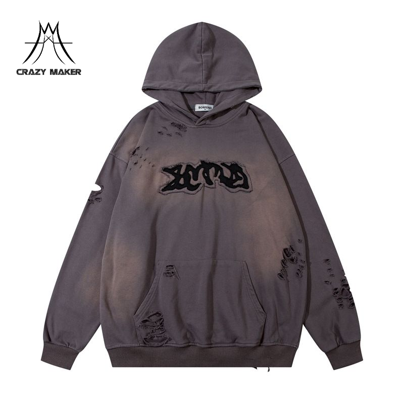 Sweat à capuche vintage déchiré en coton 100% de haute qualité personnalisé 2026, broderie de patch, peinture au pistolet pour faire des sweats à capuche pour hommes (1)