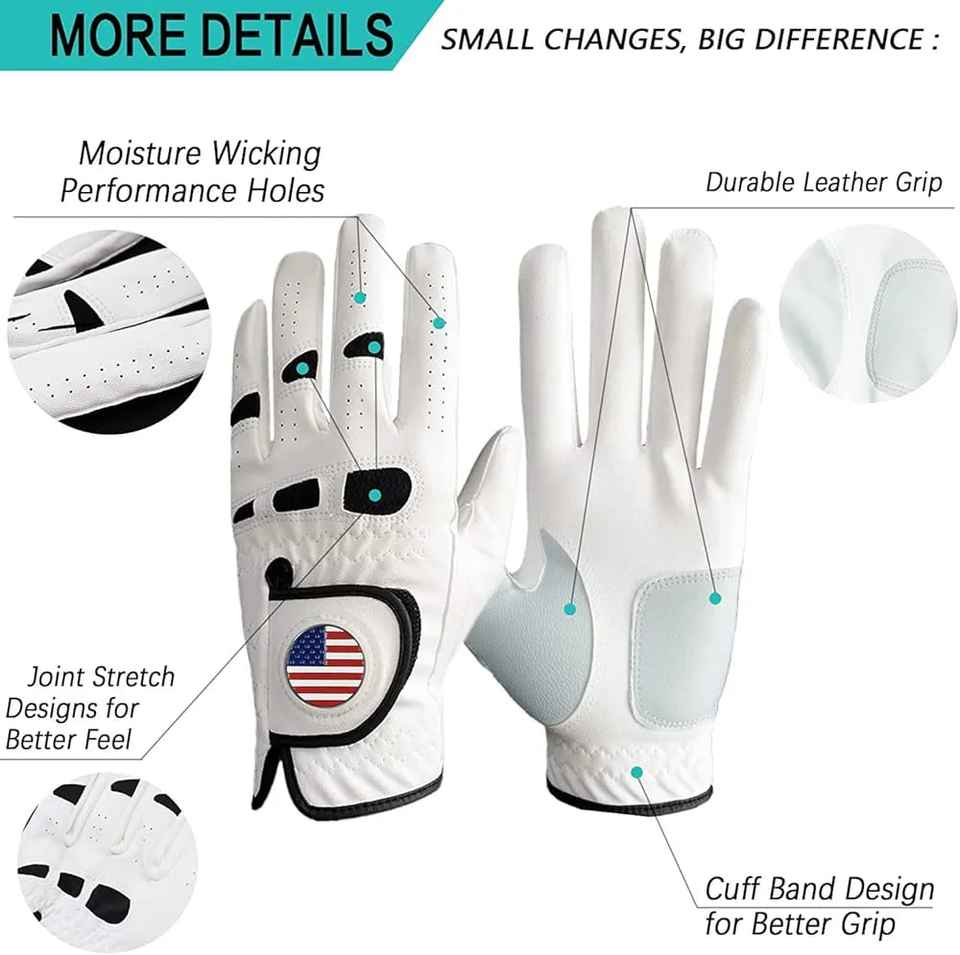 2026 Gants de golf en cuir Cabretta de haute qualité imprimés avec logo personnalisé Protection UV main droite et gauche pour une utilisation sportive
