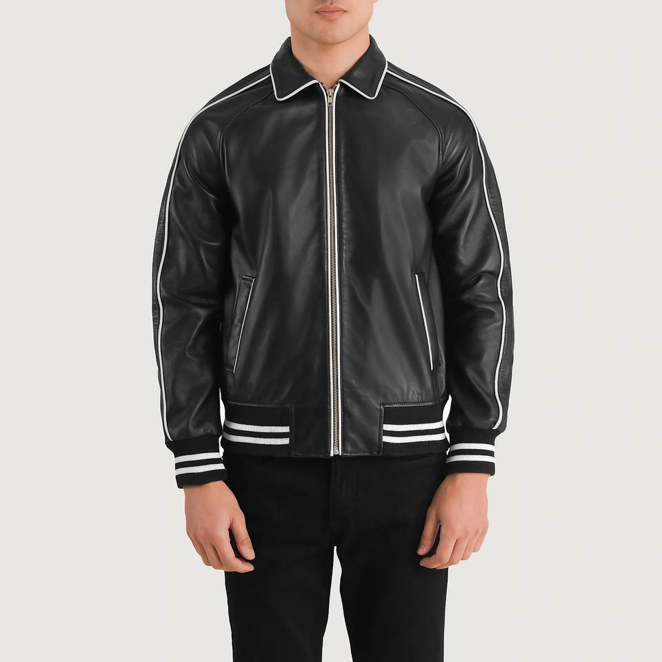 Veste universitaire personnalisée 2026 en cuir de vachette noir – Meilleur manteau d'hiver en cuir véritable pour homme – Vente en gros depuis le Pakistan