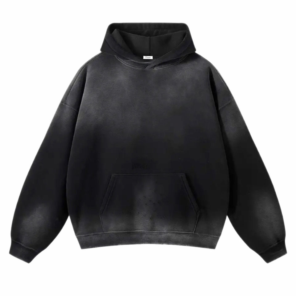 2026 Sweat à capuche unisexe personnalisé d'hiver, streetwear, effet délavé à l'acide et usé, brodé, effet délavé soleil, coupe oversize, en coton 500 g/m²