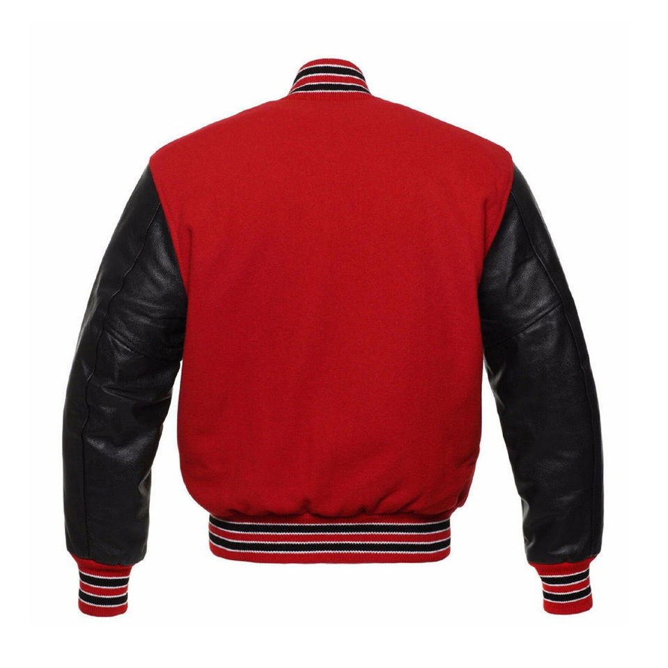 EASTBAY Veste varsity 2026 corps en laine, manches en cuir pour homme — rouge, patchs chenille, logo personnalisable