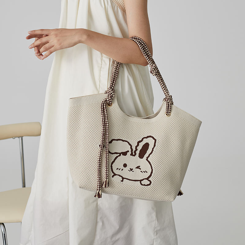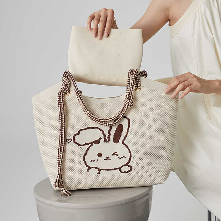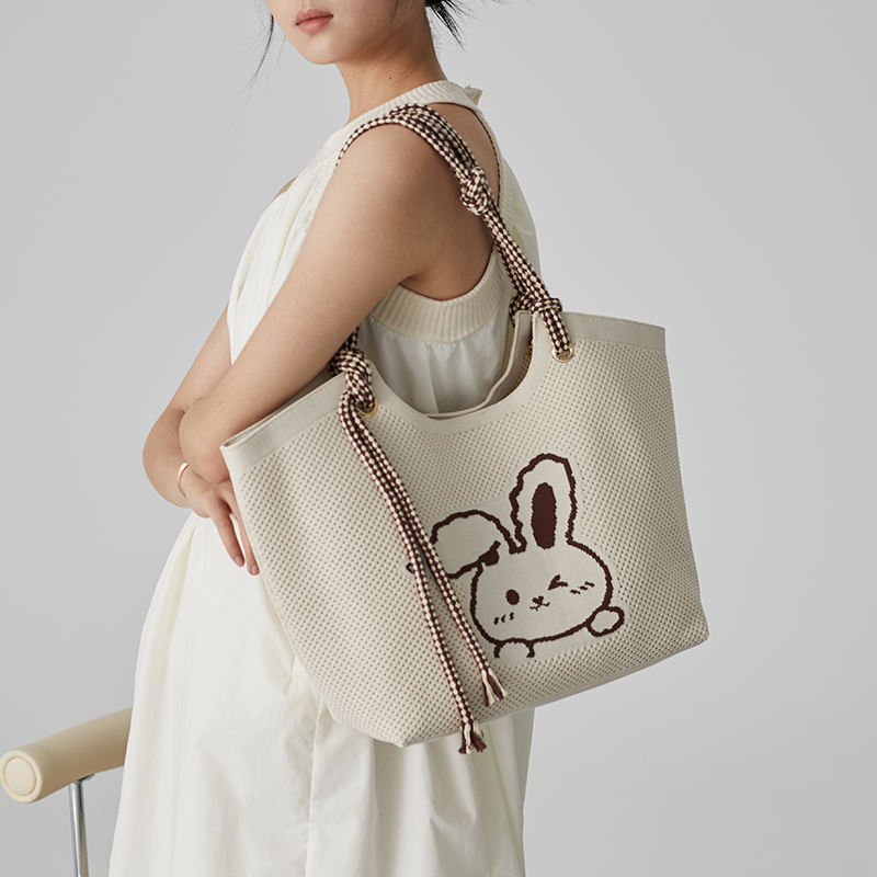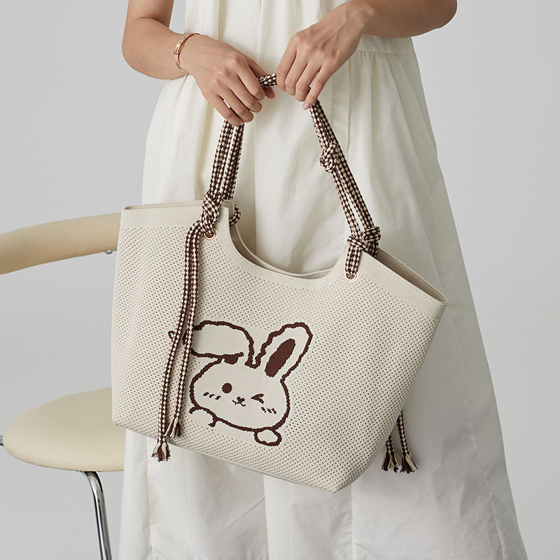 Sac fourre-tout surdimensionné pour femme avec logo personnalisé motif lapin 2026, en polyester recyclé, fermeture ouverte, nouveau style, accessoire de mode