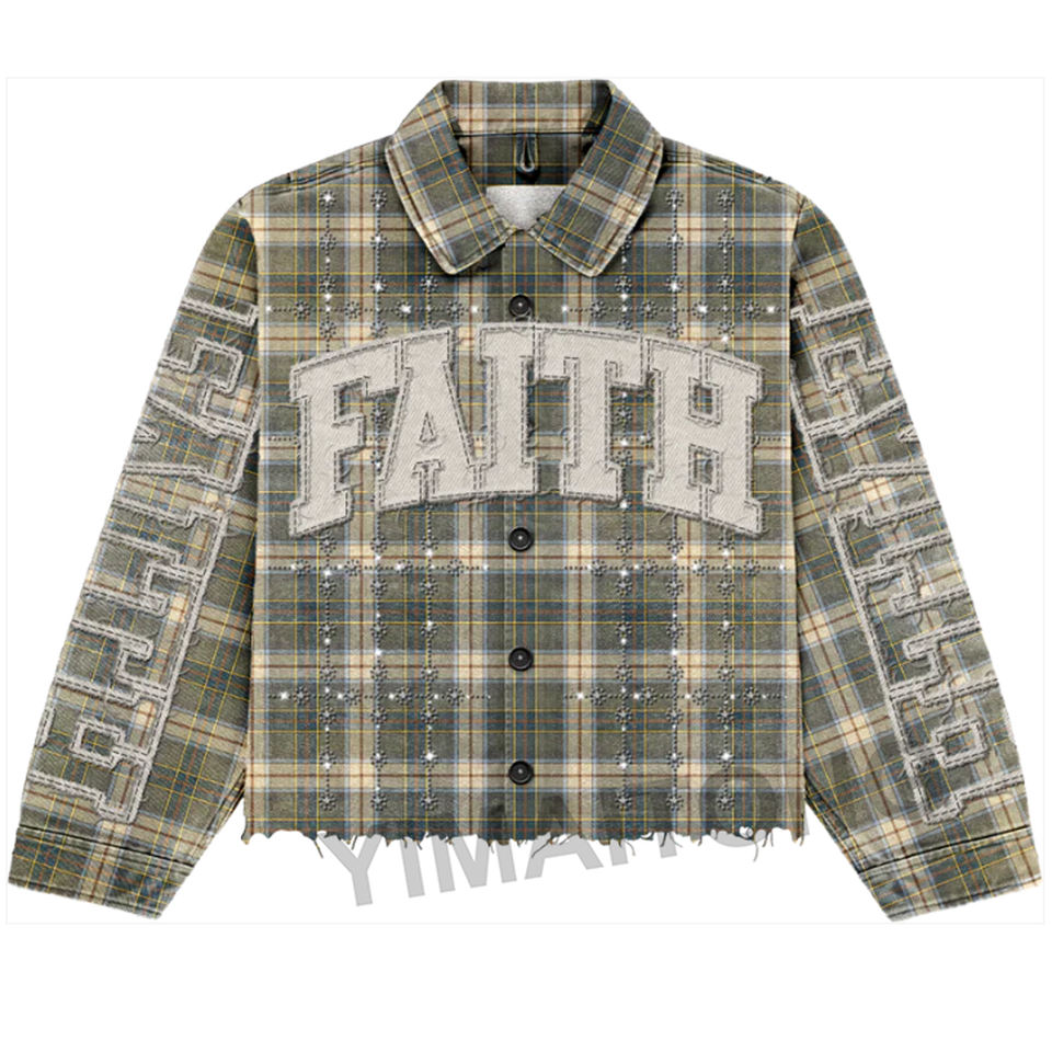 Chemises en flanelle à carreaux pour hommes, style streetwear, coupe courte et ample, manches longues, brodées, en coton, avec strass personnalisés, collection 2026