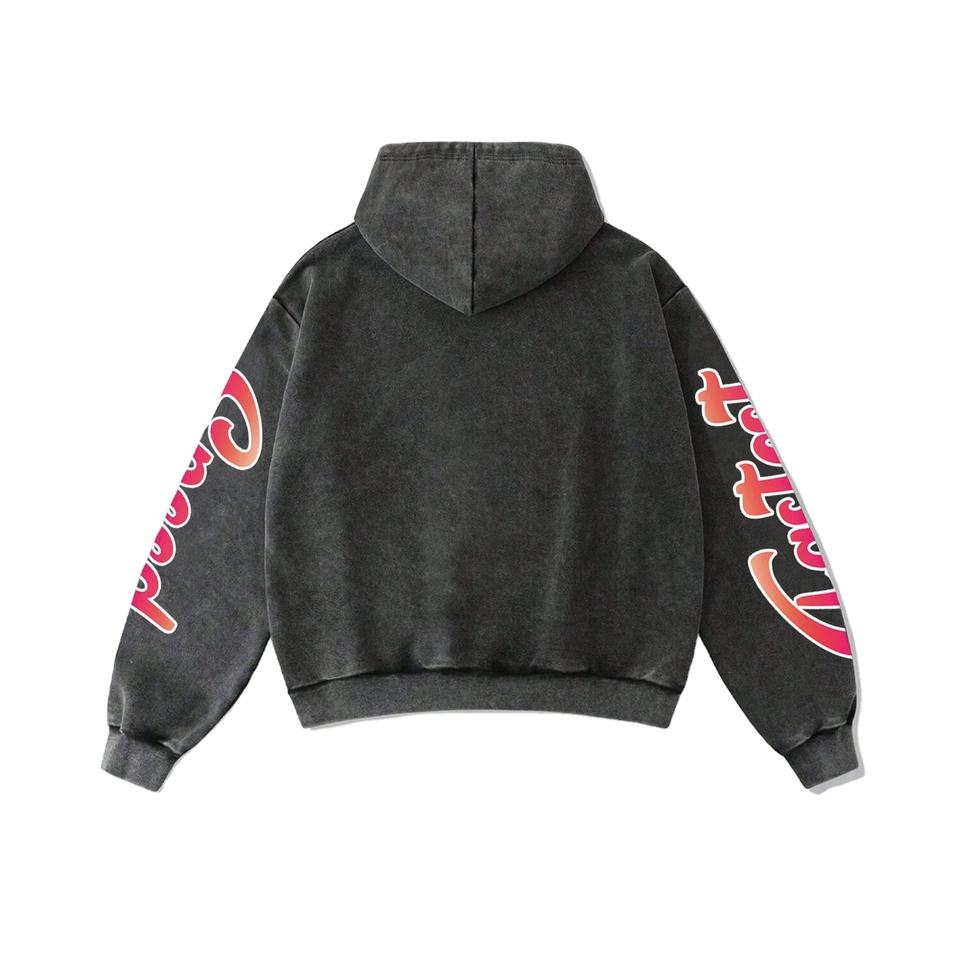 Sweat à capuche tendance pour homme, en polaire délavée et vieillie, impression DTG de haute qualité, épaules tombantes, cordon de serrage, style streetwear, collection hiver 2026