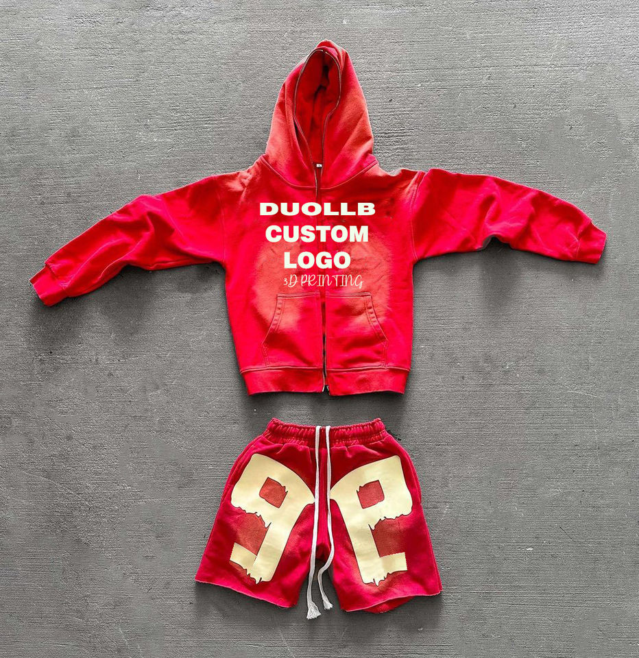 Ensemble survêtement 2026 personnalisé avec veste coupe-vent à imprimé en relief et short de sport, et sweat à capuche zippé réfléchissant