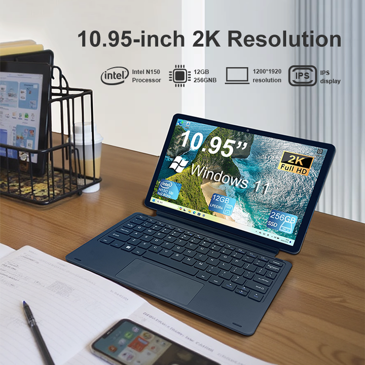 Tablette PC de jeu Surface Pro Windows 11 personnalisable 2026, boîtier métallique N150, écran tactile 2K avec clavier magnétique et stylet