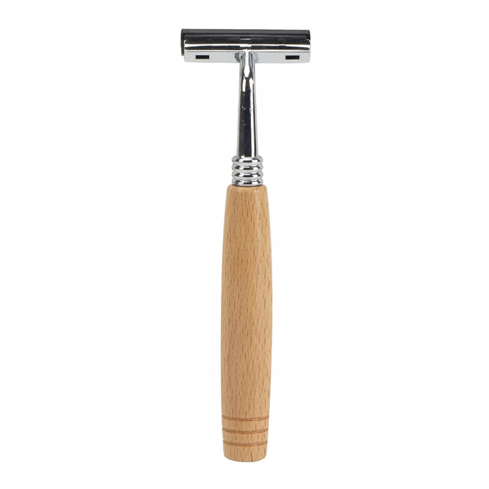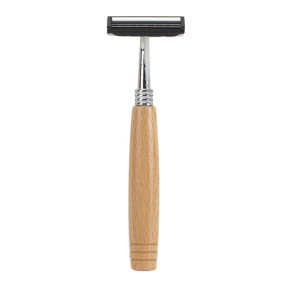Rasoir de sécurité à double tranchant personnalisé 2026 avec manche en bois naturel, rasoir à raser, épilateur avec 10 lames