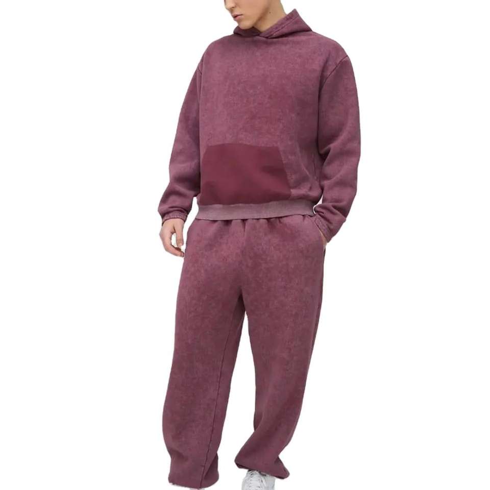 Ensemble de survêtement homme personnalisé avec logo OEM 2026 – Prix de gros – Style streetwear délavé et vieilli – Survêtement respirant