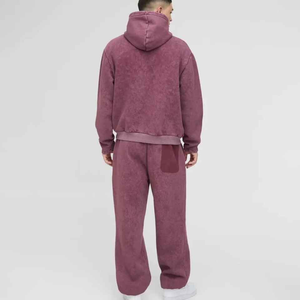 Ensemble de survêtement homme personnalisé avec logo OEM 2026 – Prix de gros – Style streetwear délavé et vieilli – Survêtement respirant