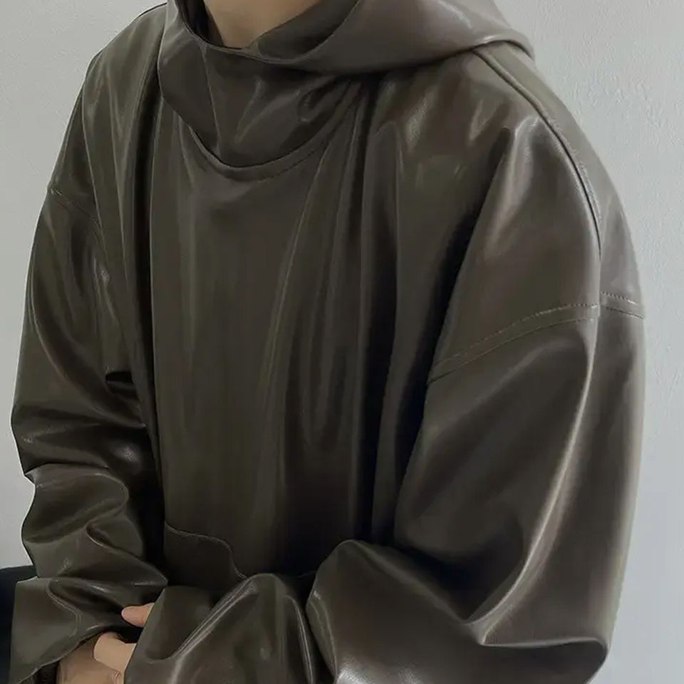 Sweat à capuche en cuir pour homme, style respirant et séchage rapide, tissu de haute qualité, couleur unie, logo personnalisé 2026
