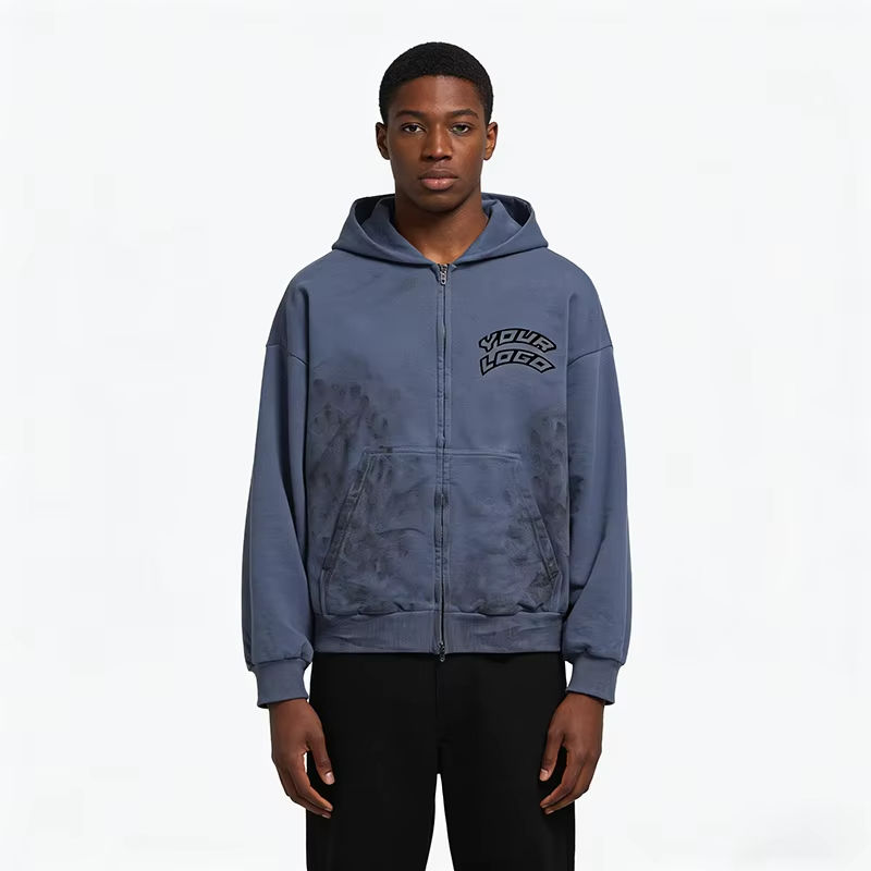 Sweat à capuche personnalisé 2026 avec impression sérigraphique effet soleil délavé, 100 % coton molletonné haute densité, pour un look décontracté ou streetwear, unisexe
