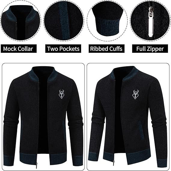 Pull personnalisé 2026 en velours épais, style décontracté pour homme, fermeture éclair intégrale, style coréen, cardigan en tricot, pull chaud