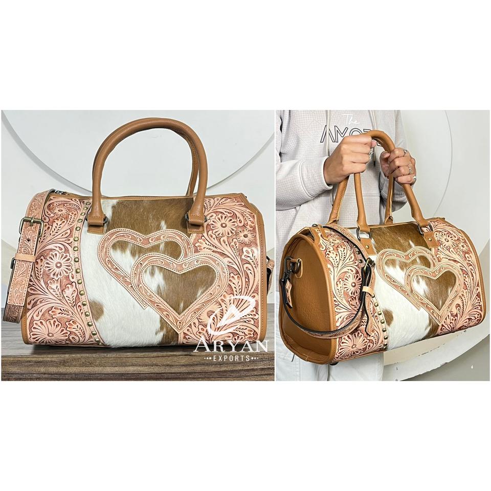 Sac de voyage élégant en cuir de vachette pleine fleur, grand format, style Speedy, avec motif cœur, pour femme, collection 2026
