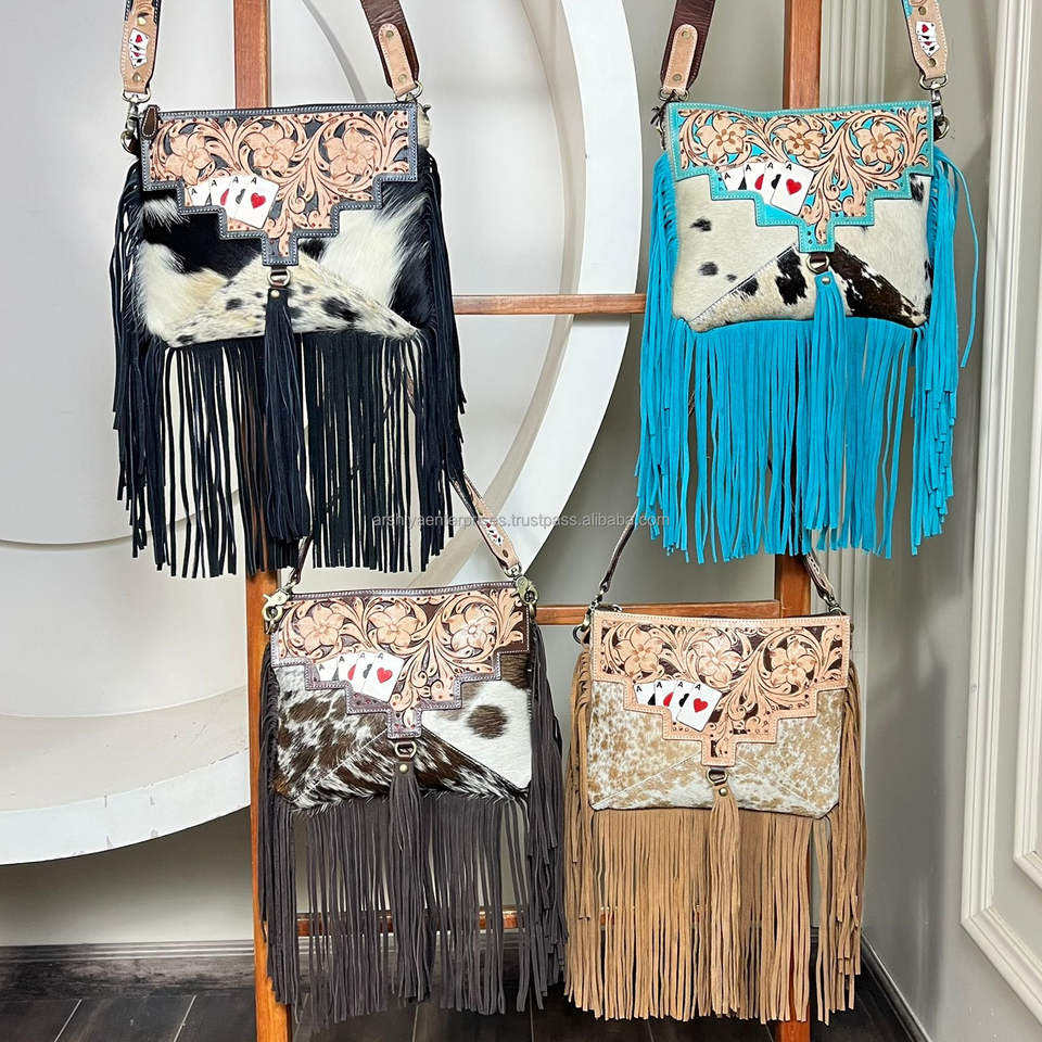 Product name:Hand Tooled Cowhide Leather Fringe Crossbody Bag