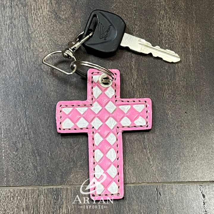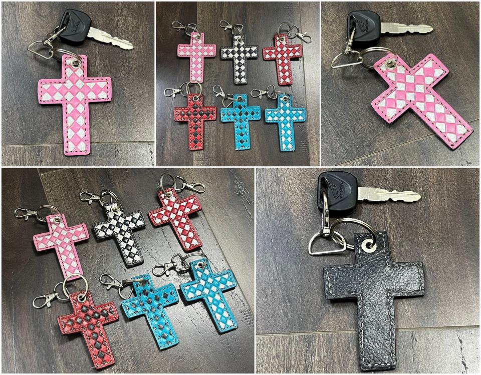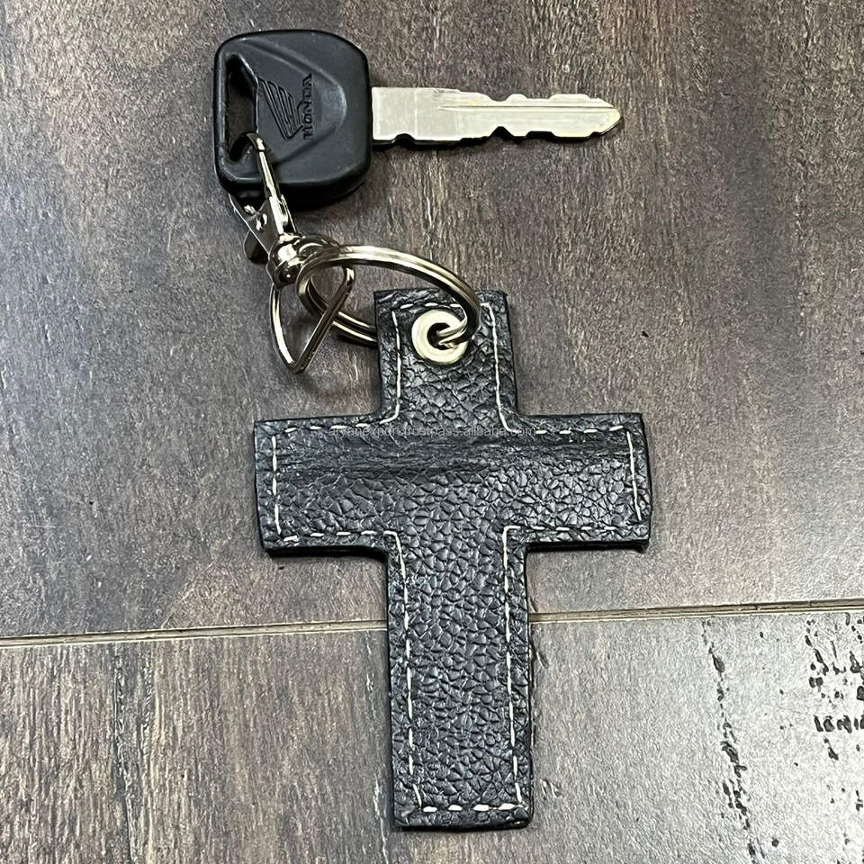 Porte-clés en cuir de vache véritable fait main par des designers 2026, motif tissé, porte-clés religieux, breloque pour sac, vente en gros, cadeaux en vrac