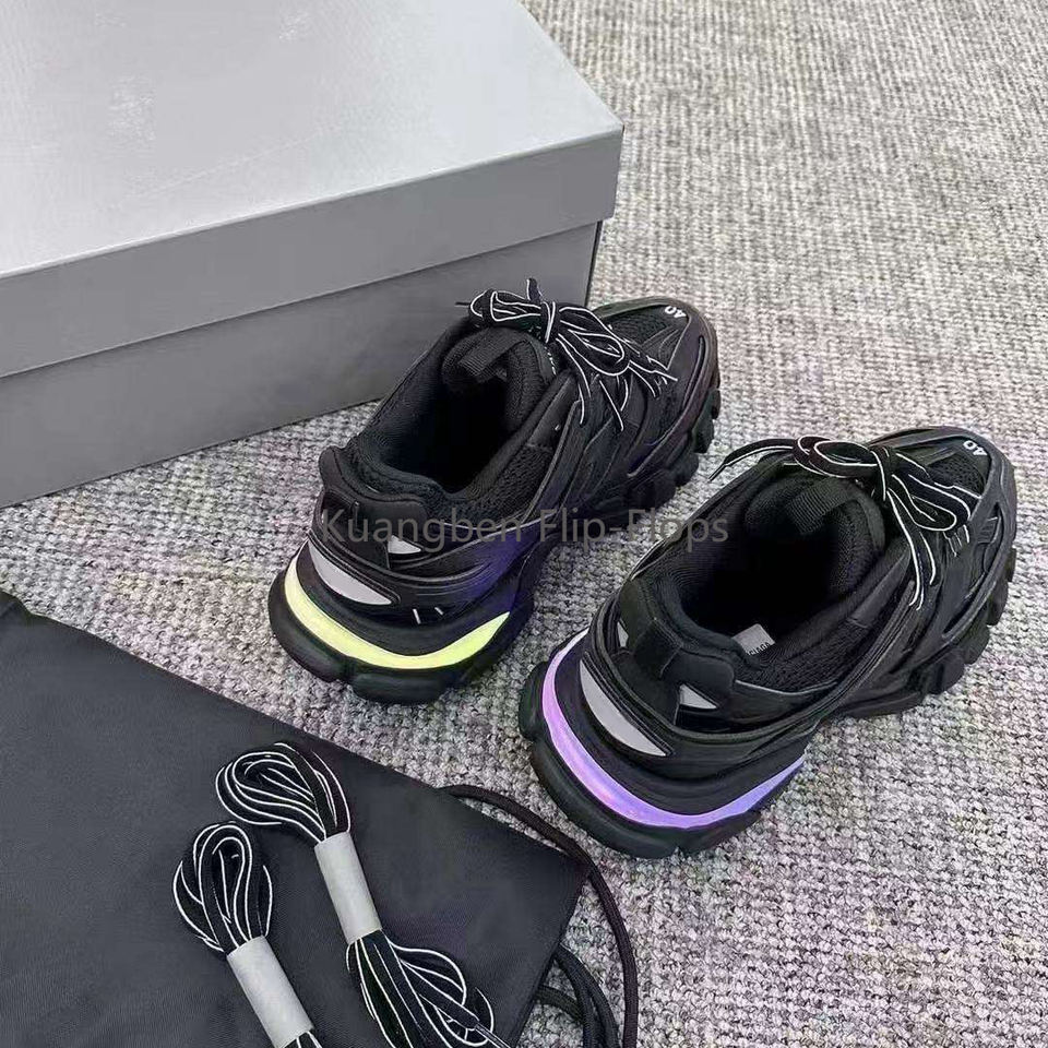 Baskets de sport de créateur 2026 avec lumières LED en cuir véritable pour l'hiver, style chunky pour la marche