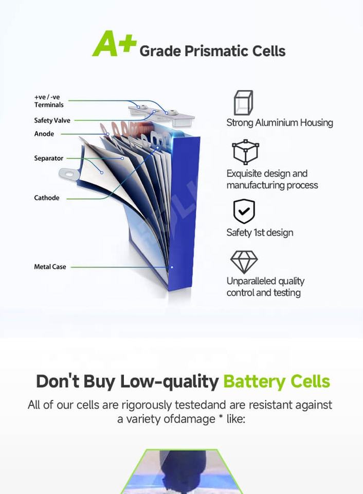 Batteries lithium-ion prismatiques LFP300Ah 314Ah 8000 cycles, stock UE 2026, cellules MB31 3.2V Lithium-ion LiFePO4 pour système solaire