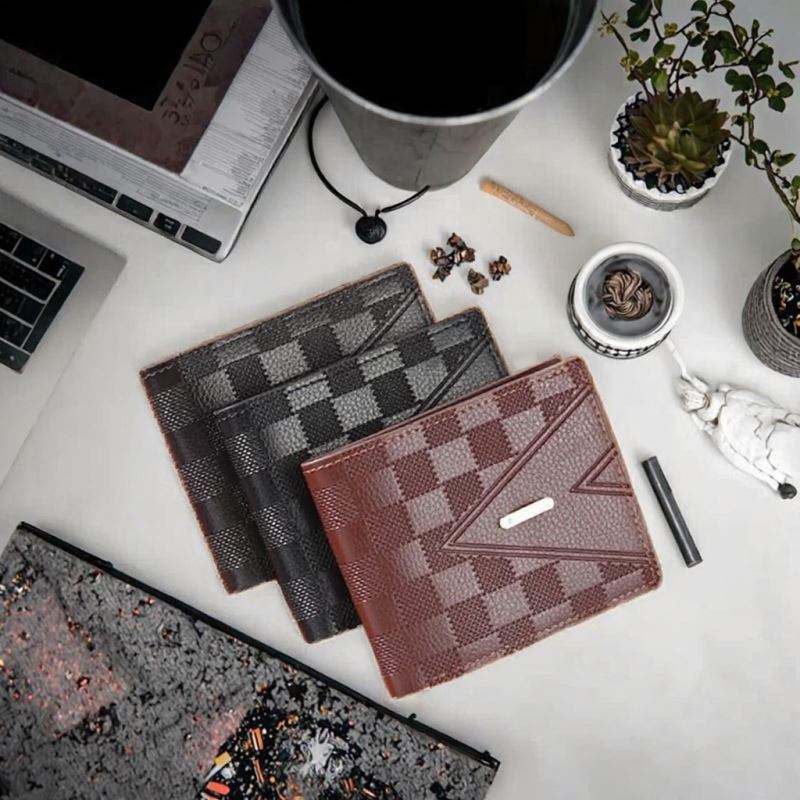 2026 Factory Wholesale Fashionable Slim Trifold Leather Wallet OEM Logo Two ID Window Open/Fold Mens Short Cash Coin Holder