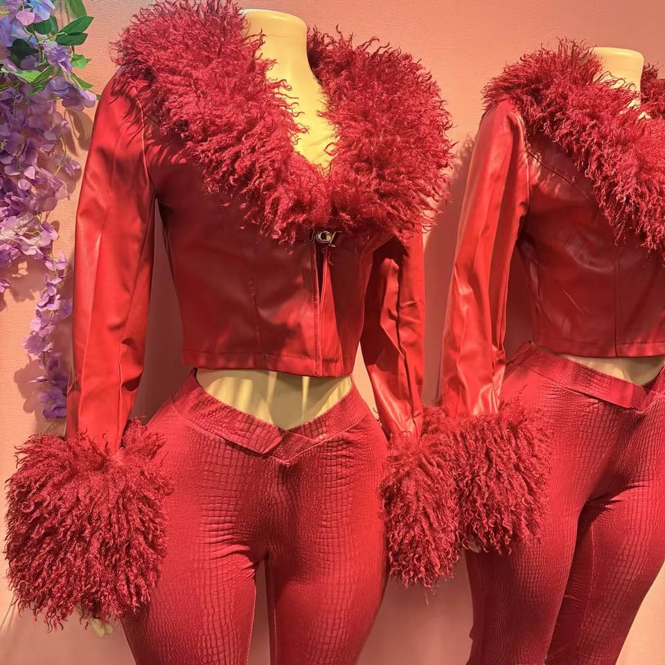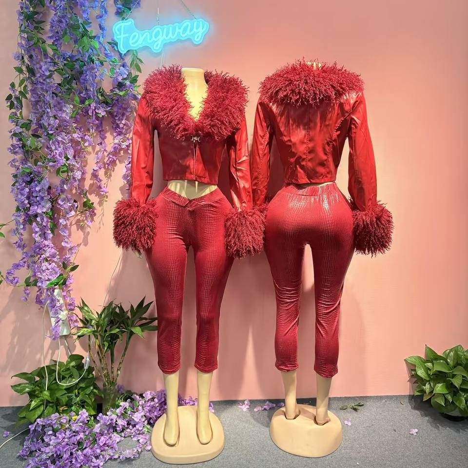 Ensemble 2 pièces en cuir PU automne-hiver 2026, manteaux en fourrure pour femmes, vestes courtes en fourrure pour femmes, pantalons courts sexy assortis pour femmes
