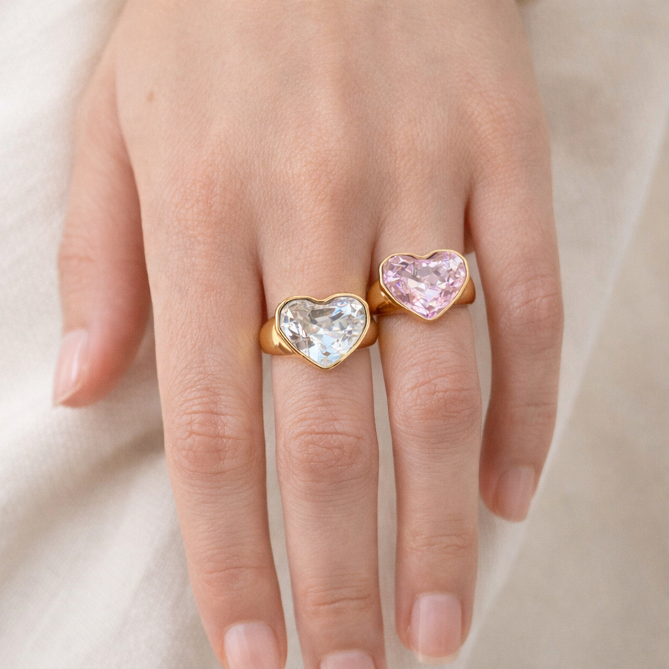 Nom du produit:Bague de sceau massive solitaire avec diamant taille cœur en or 14 carats