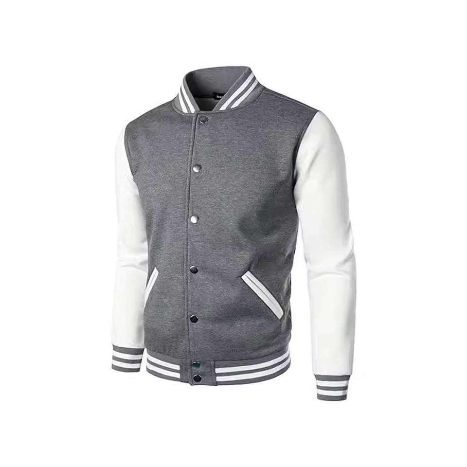 Blouson universitaire homme 2026 entièrement personnalisé, couleur gris uni, style Letterman, col montant, léger