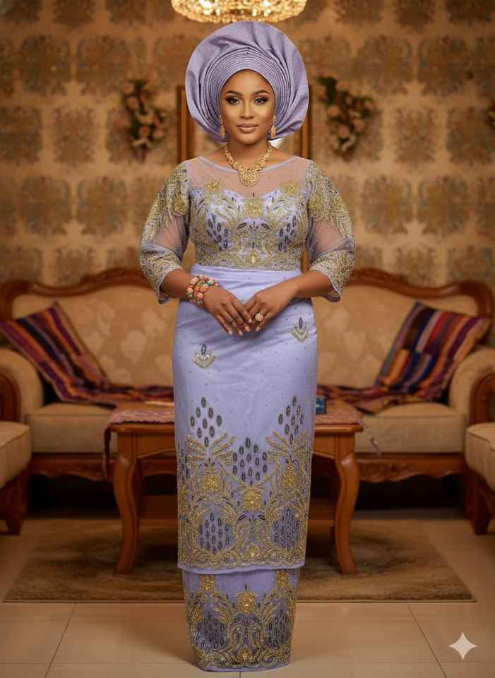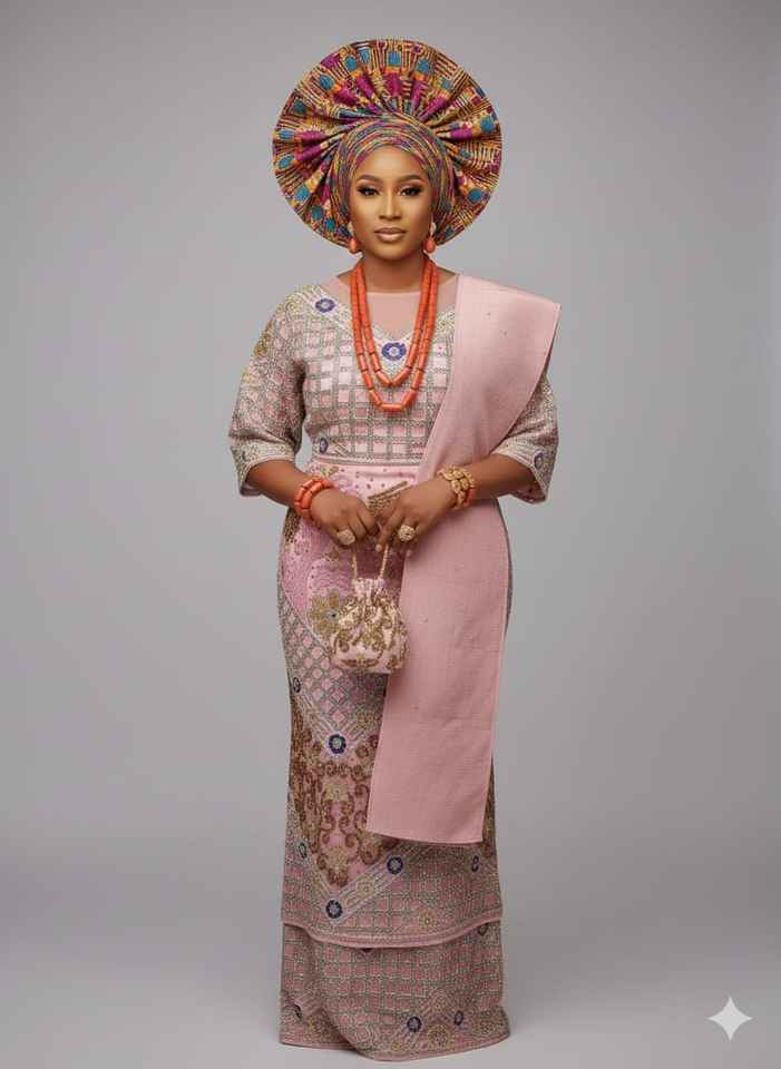 2026 Gele Grace African Ethnic Wedding Dress for Girls/Women Hand Beaded Floral Design Eco-Friendly 100% Polyester Fabric