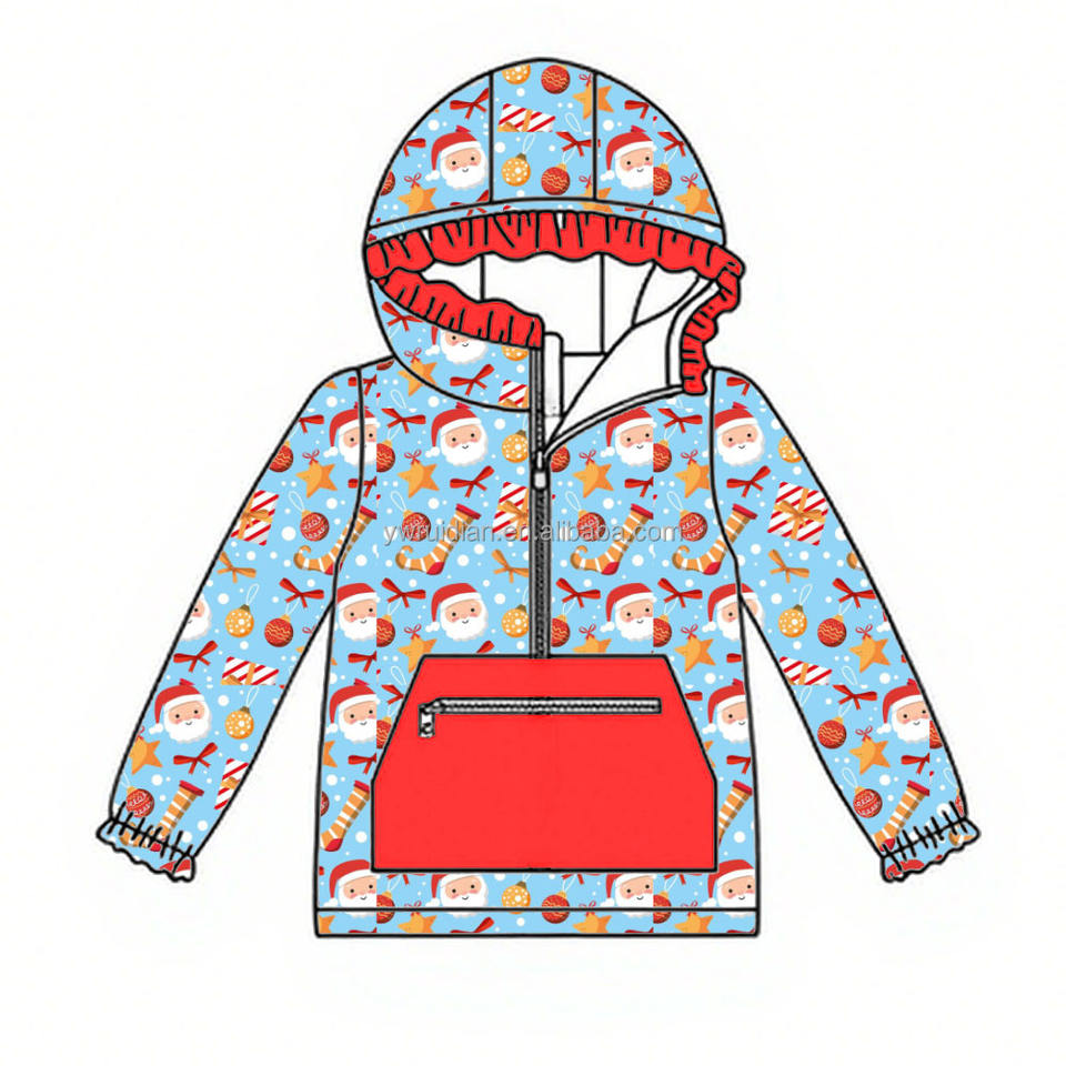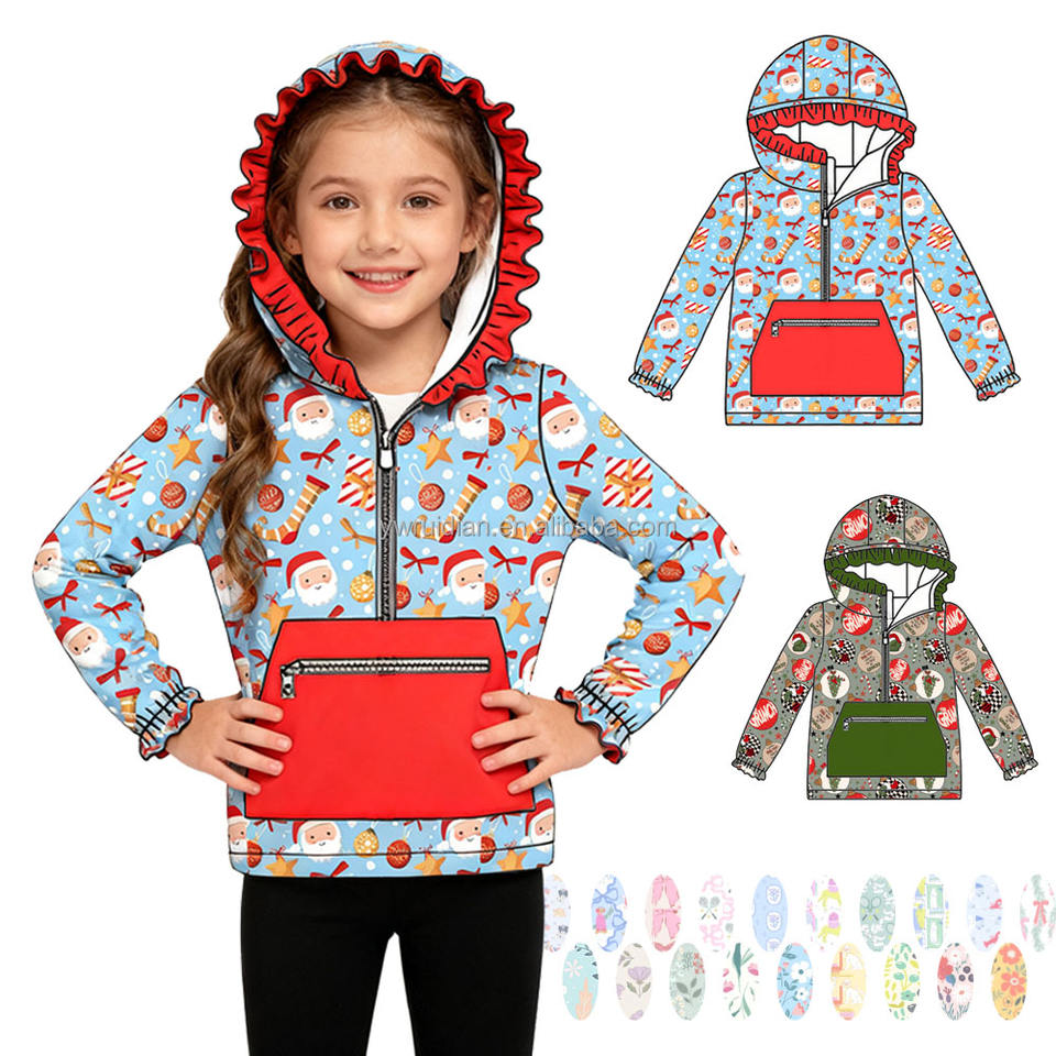2026 filles printemps impression personnalisée noël puant rouge Animal à capuche à volants mignon veste pour enfants filles pull