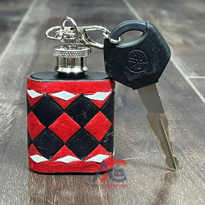Product Name:Hand Tooled Checkered Leather Stainless Steel Hip Flask With Keyring