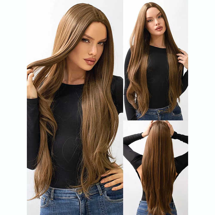 2026 Perruque bandeau en soie haute température, cheveux longs et lisses, avec frange souple haute densité, en maille extensible confortable, OEM/ODM
