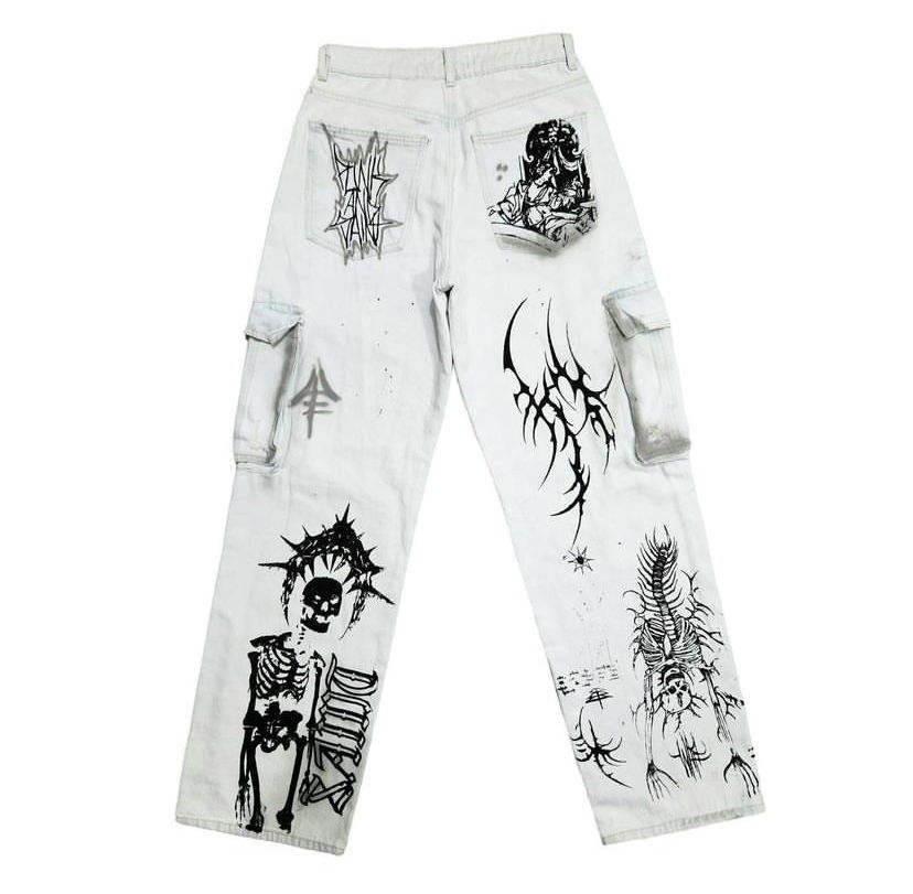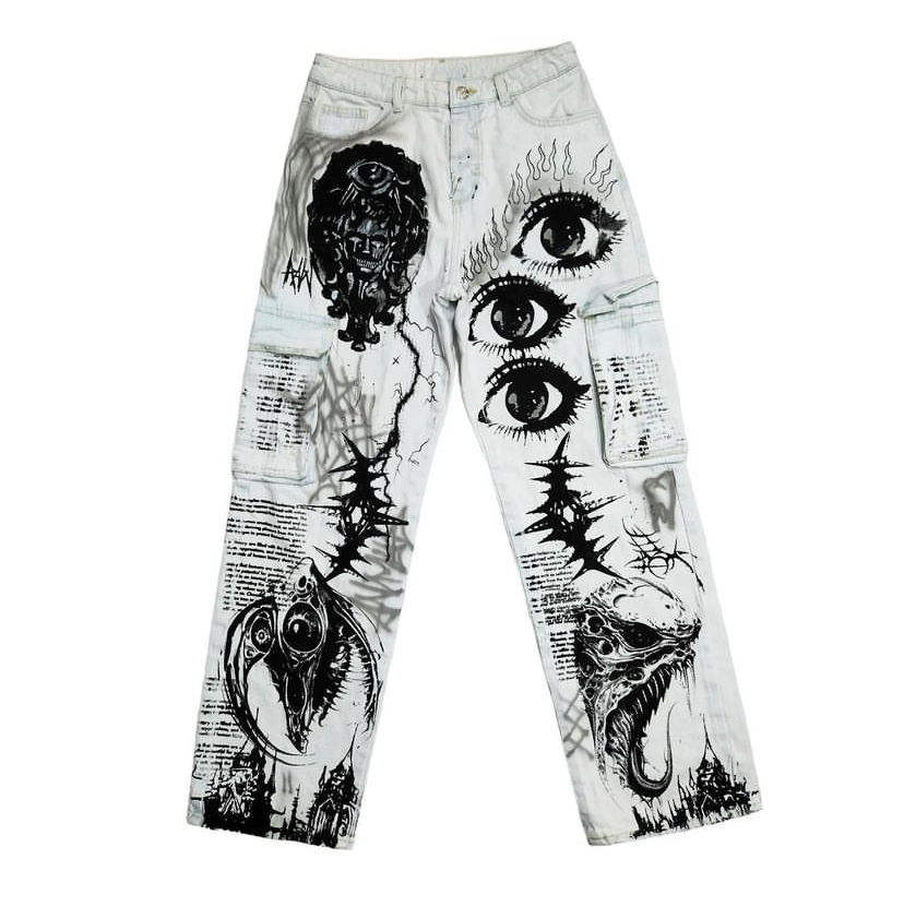 Jeans en denim pour homme de haute qualité, impression personnalisée, lavage blanc, coupe droite, streetwear, hip-hop, OEM ODM, décontracté, coton respirant, 2026
