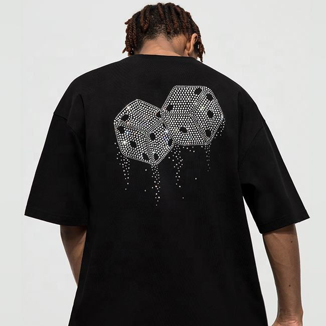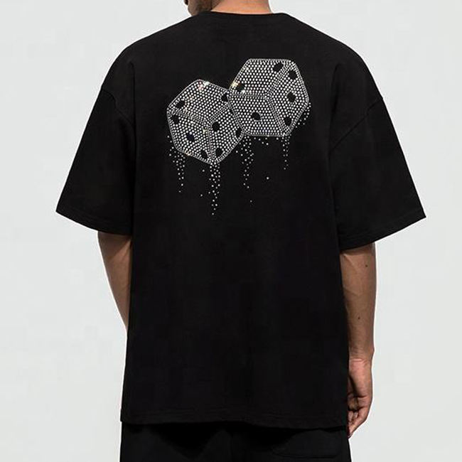 T-shirts en strass de haute qualité 2026, T-shirts personnalisés à imprimé strass, T-shirts à col rond, Fabricants de T-shirts haut de gamme, T-shirts surdimensionnés