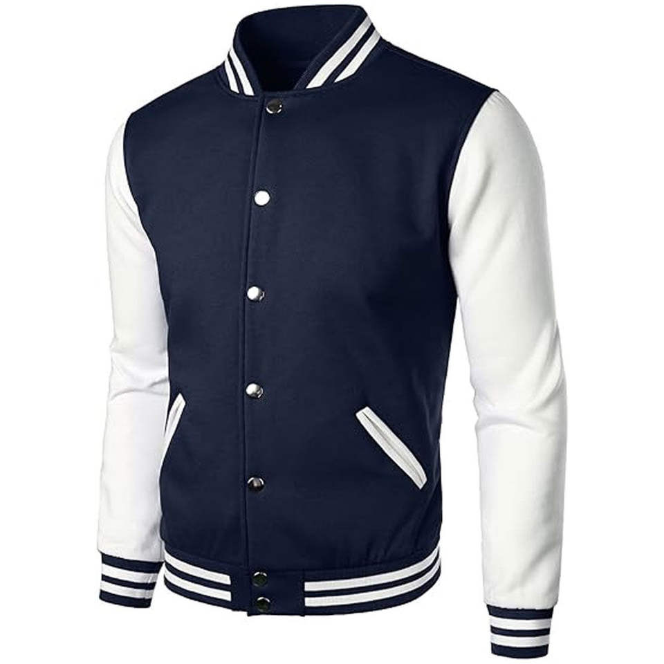 Blousons universitaires pour hommes 2026 de haute qualité, couleur marine unie, en tissu 100 % coton, col côtelé, manches en cuir, chauds pour l'hiver, style baseball