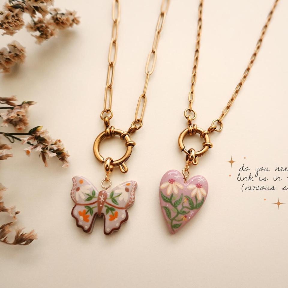 Collier et bracelet avec pendentif en forme de nœud papillon et de lune, couleur or 18 carats, préservant la couleur, peinture à l'huile DIY pour cadeaux, tendance 2026