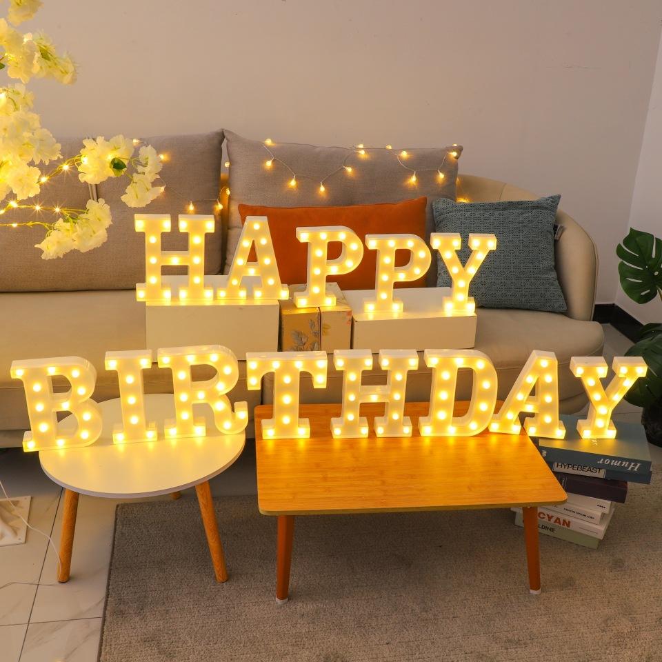Nouvelles lettres lumineuses LED 2026 – Enseigne lumineuse pour mariage, anniversaire, fête – Décoration alimentée par piles pour éclairage nocturne