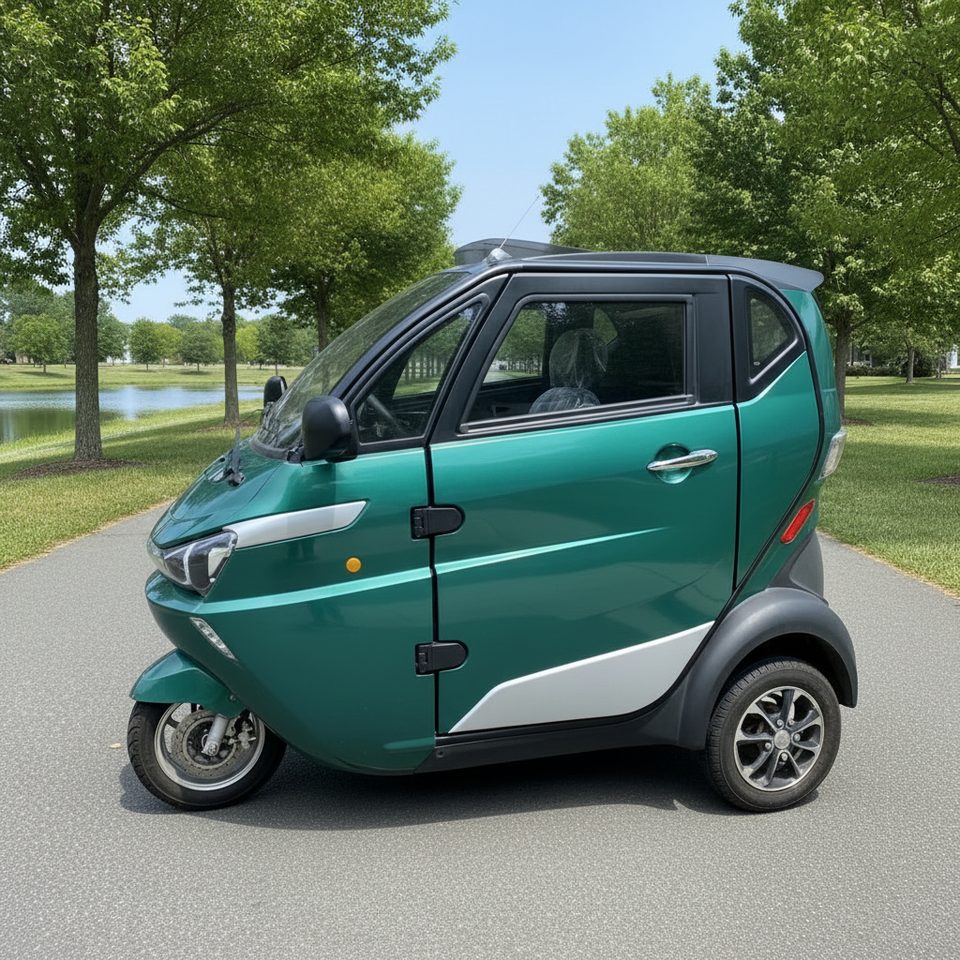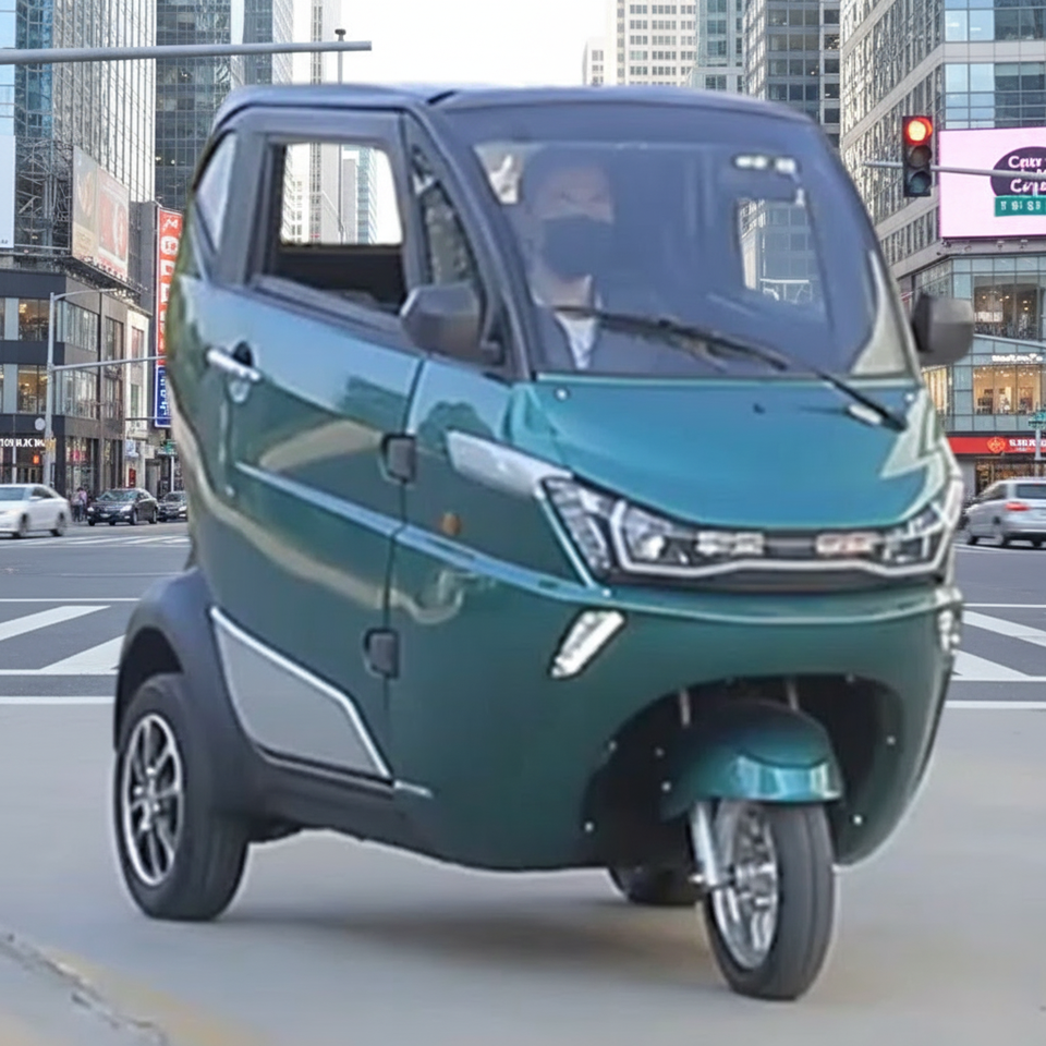 Tricycle électrique sans entretien certifié CEE, modèle 2026, carrosserie fermée, freins à disque hydrauliques, pour les déplacements en famille