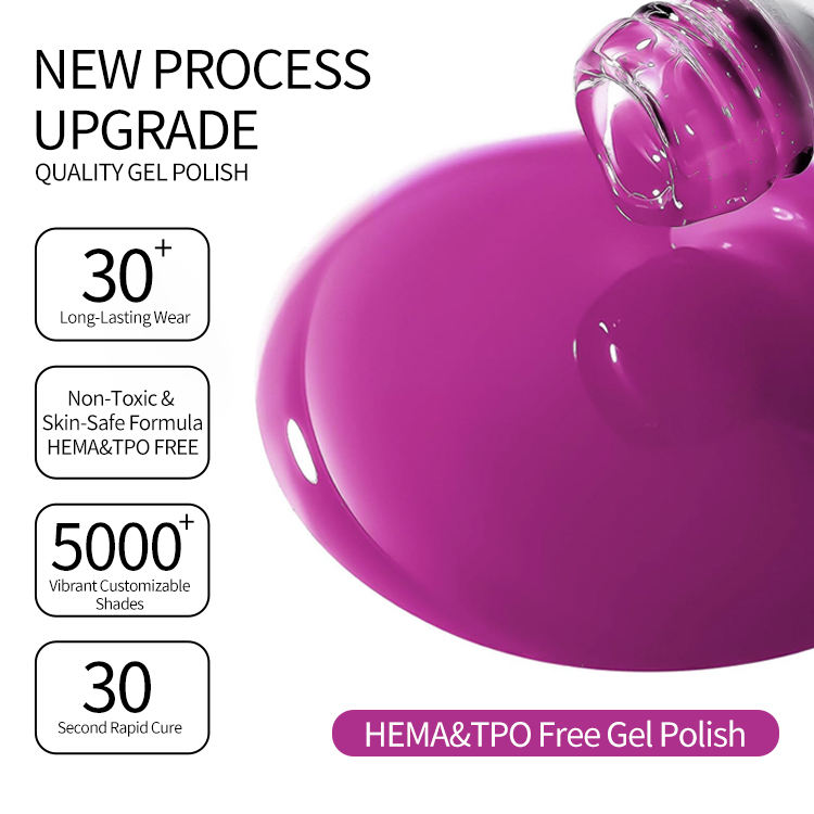 Gel à ongles chaud 2026 - Haute couvrance, durcissement UV/LED, sans HEMA ni TPO, longue durée, facile à retirer, plus de 5000 couleurs, OEM