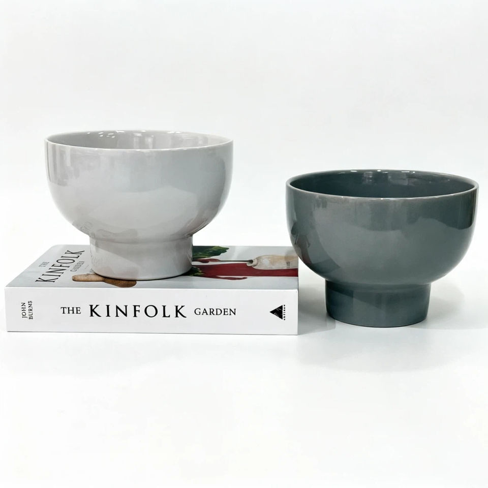 Nouveauté 2026 : Pots de fleurs en céramique blancs et gris clair en forme de bol sur pied, vente directe usine, pour plantes succulentes d'intérieur, décoration maison