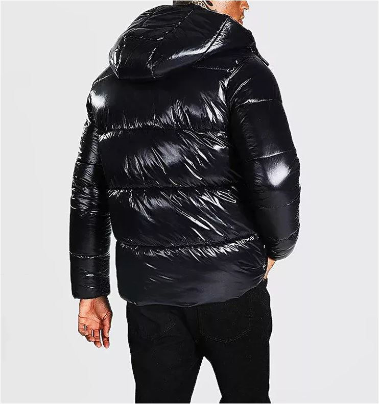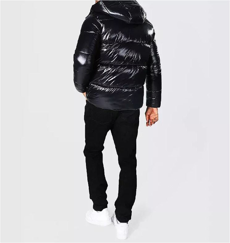 Nouvelle Collection 2026 – Manteau matelassé de créateur épais avec logo, col montant oversize, pour homme, en polaire brillante noire personnalisée, idéal pour l'hiver