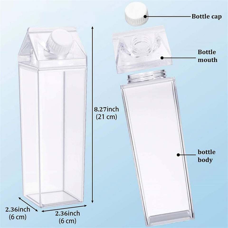 Bouteille d'eau carrée transparente personnalisable, tendance et mignonne, style carton de lait, pour le sport – Nouveauté 2026, Ventes Flash
