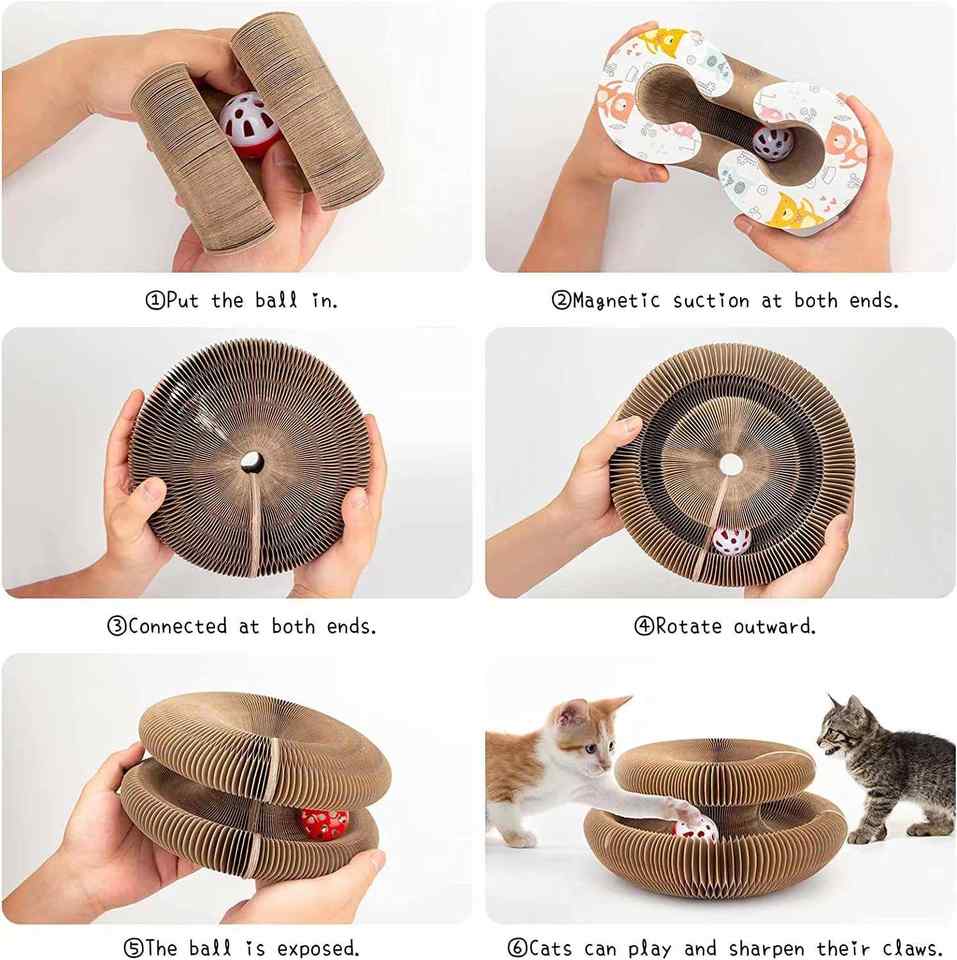 Meilleures ventes 2026 : Griffoir pour chat pliable en forme d'orgue magique avec balle, en carton ondulé pour le tranchage des griffes du chat