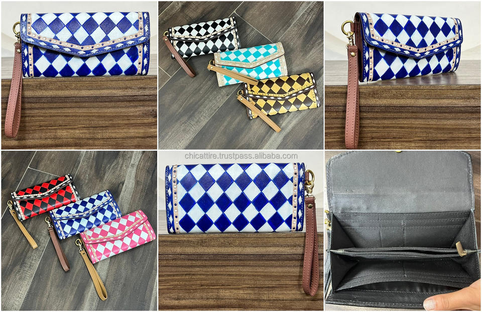 Product name:Hand Tooled Checkered Leather Wristlet Wallet
