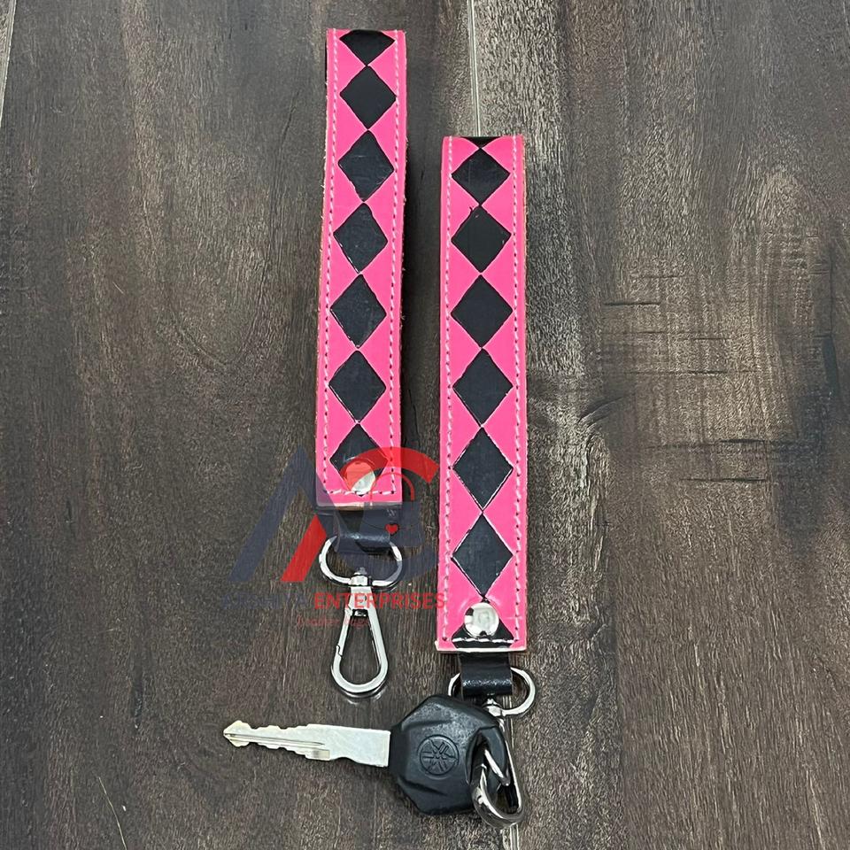 Nom du produit:Porte-clés bracelet en cuir à carreaux véritable