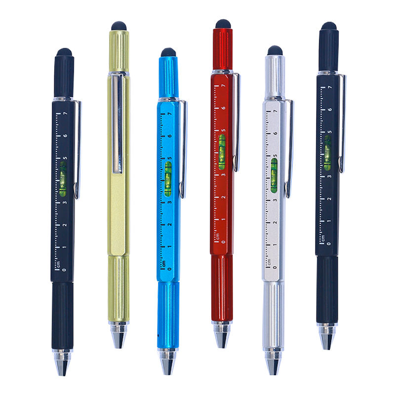 Stylo multifonction 6 en 1 avec règle, niveau, tournevis à deux têtes, stylet et stylo à bille