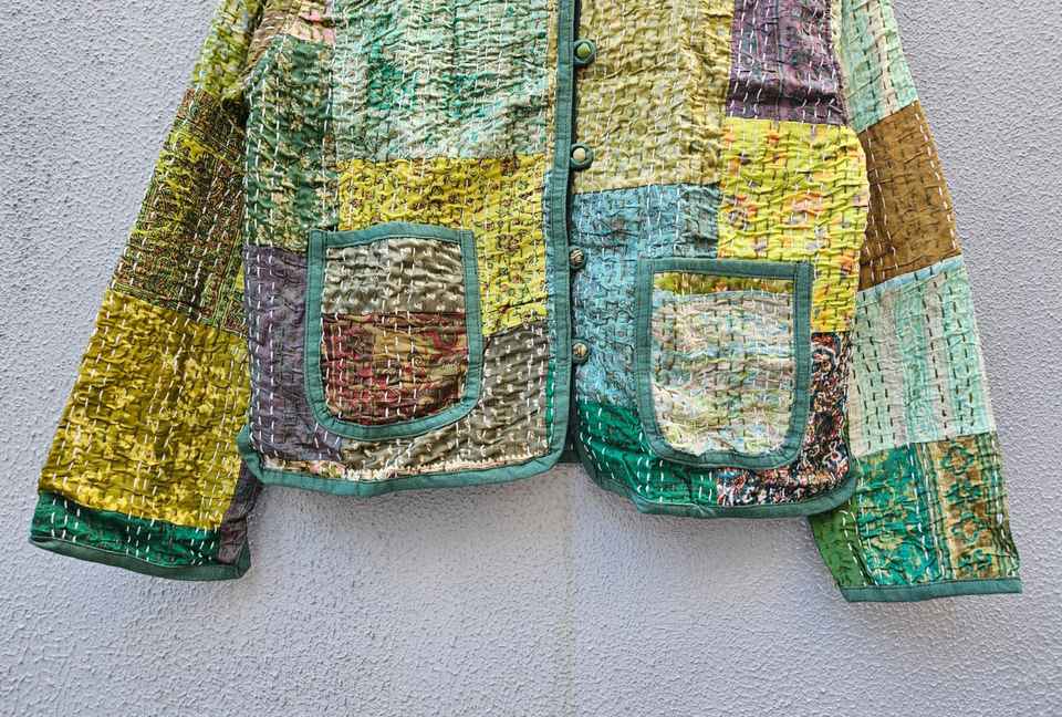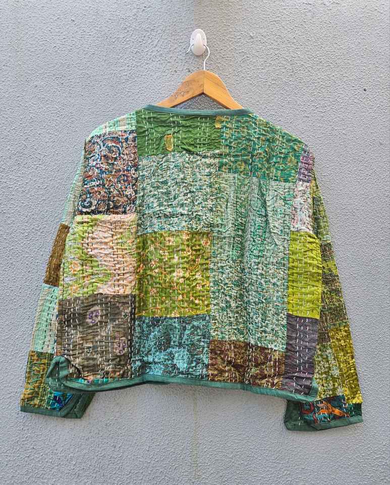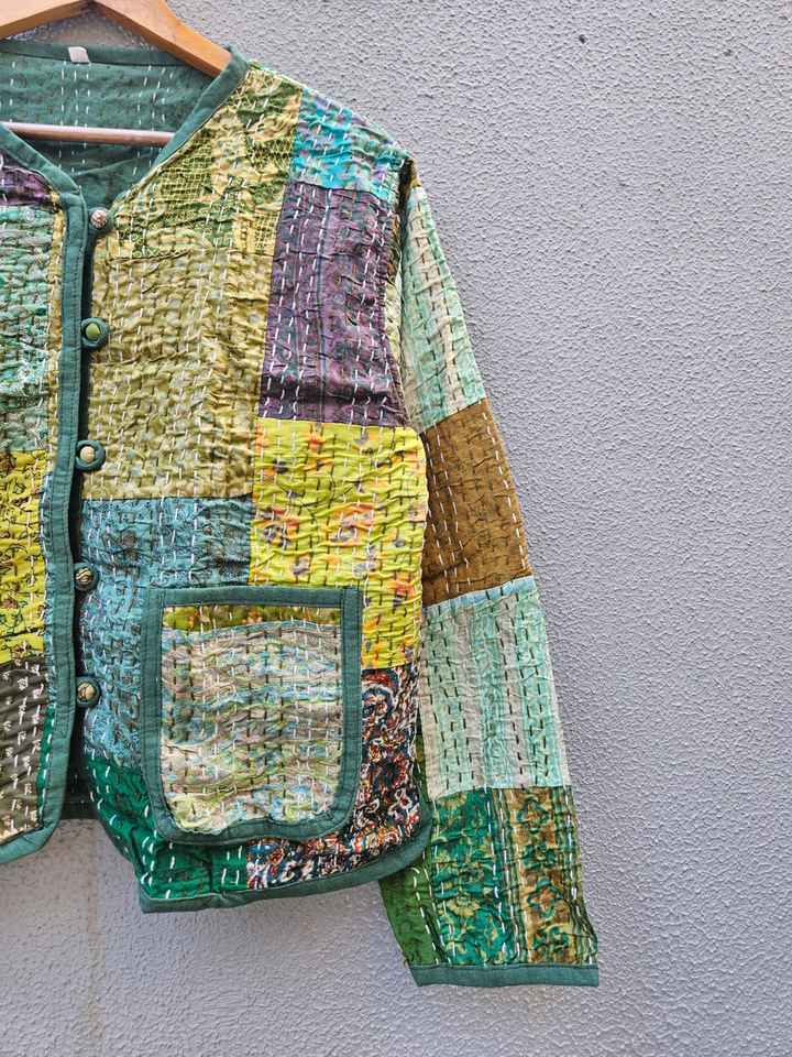 Veste Kantha matelassée en patchwork de coton fait main indien 2026, personnalisable, imprimé indien au bloc, style bohème, pour femme, manteau d'hiver