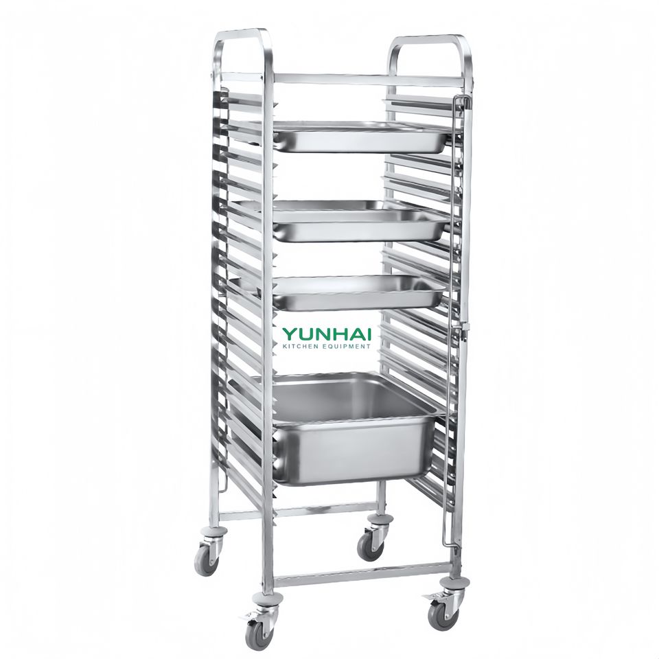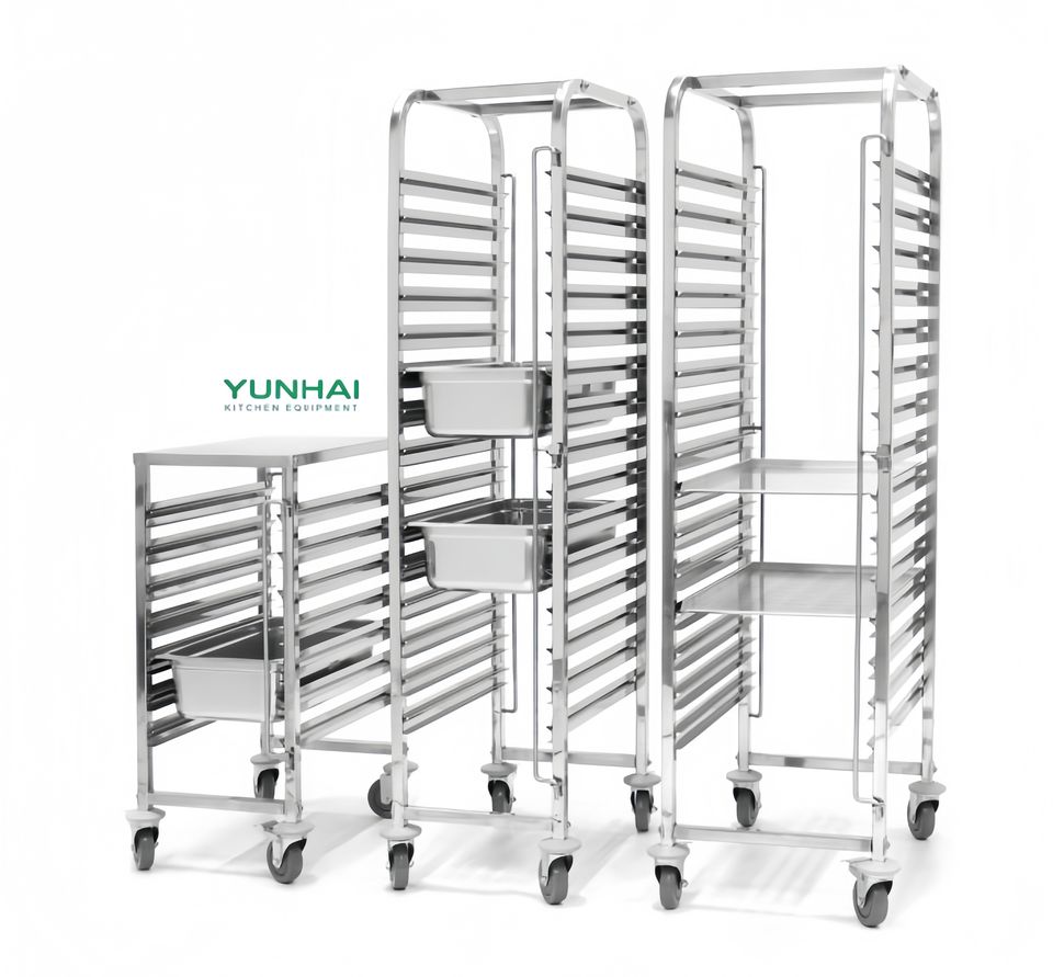 Chariot de service alimentaire 4 roues en acier inoxydable pour hôtel, support de rangement pour accessoires de cuisine 2026