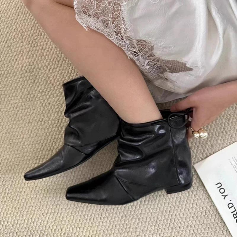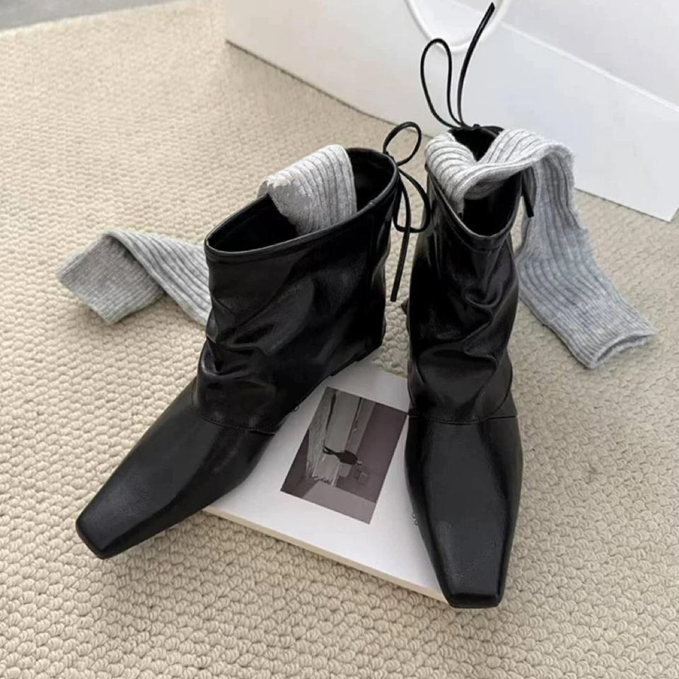Bottes hautes tendance style coréen 2026 à bout carré froncé avec nœud, pour femmes, à talon épais, pour mollets larges