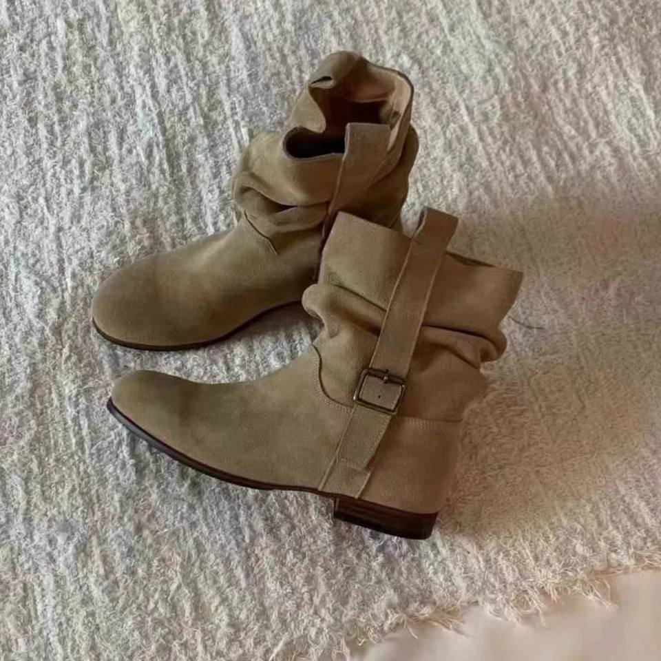 Bottes plates style coréen froncées à bout rond pour femme, confortables et tendance, modèle 2026